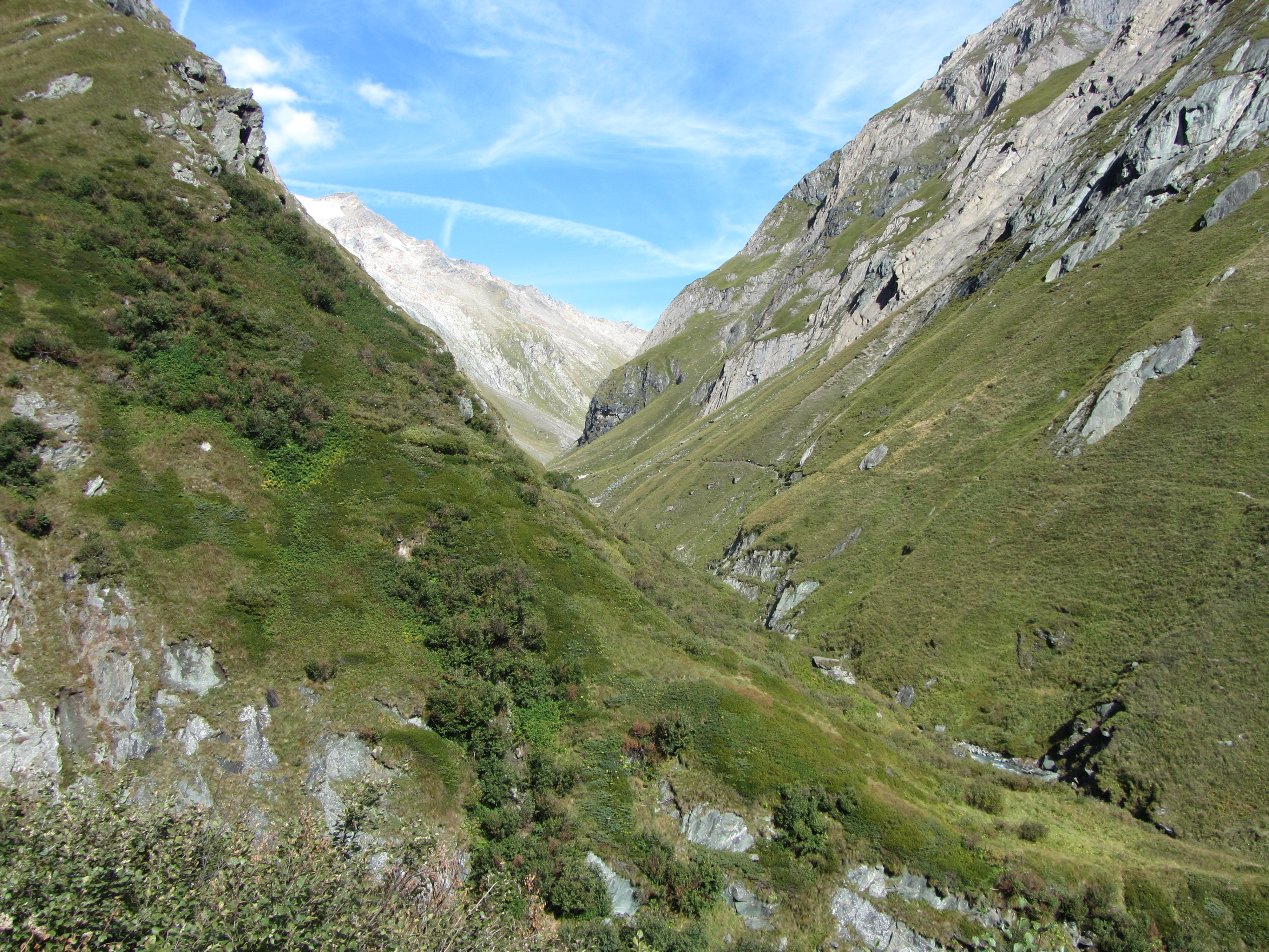 Thou shall not pass (oh ech wel) Het begin van het Dabertal. Het eerste stukje pad slingert flink omhoog. Flinke brug Het Umbaltal en de Clarahütte Laatste blik in het Umbaltal Het Dabertal lag nog deels in de schaduw Wat overdreven stukje Seilsicherung