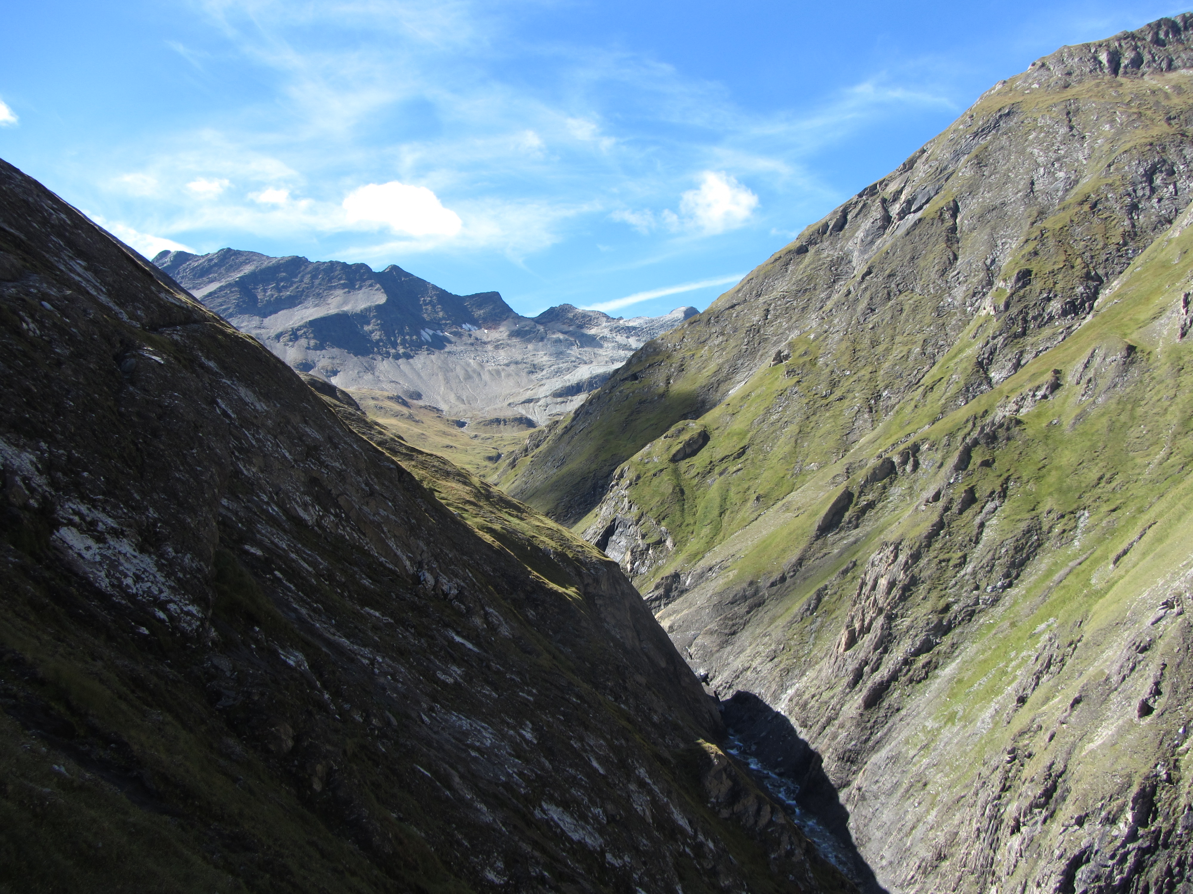 Laatste blik in het Umbaltal Het Dabertal lag nog deels in de schaduw Wat overdreven stukje Seilsicherung Bijna in de zon Beekoversteek. Helaas het verkeerde pad dus twee keer overgestoken Hoe overtuigend het pad beneden er eerst ook uitzag, het was toch verkeerd Geen Edelweiß