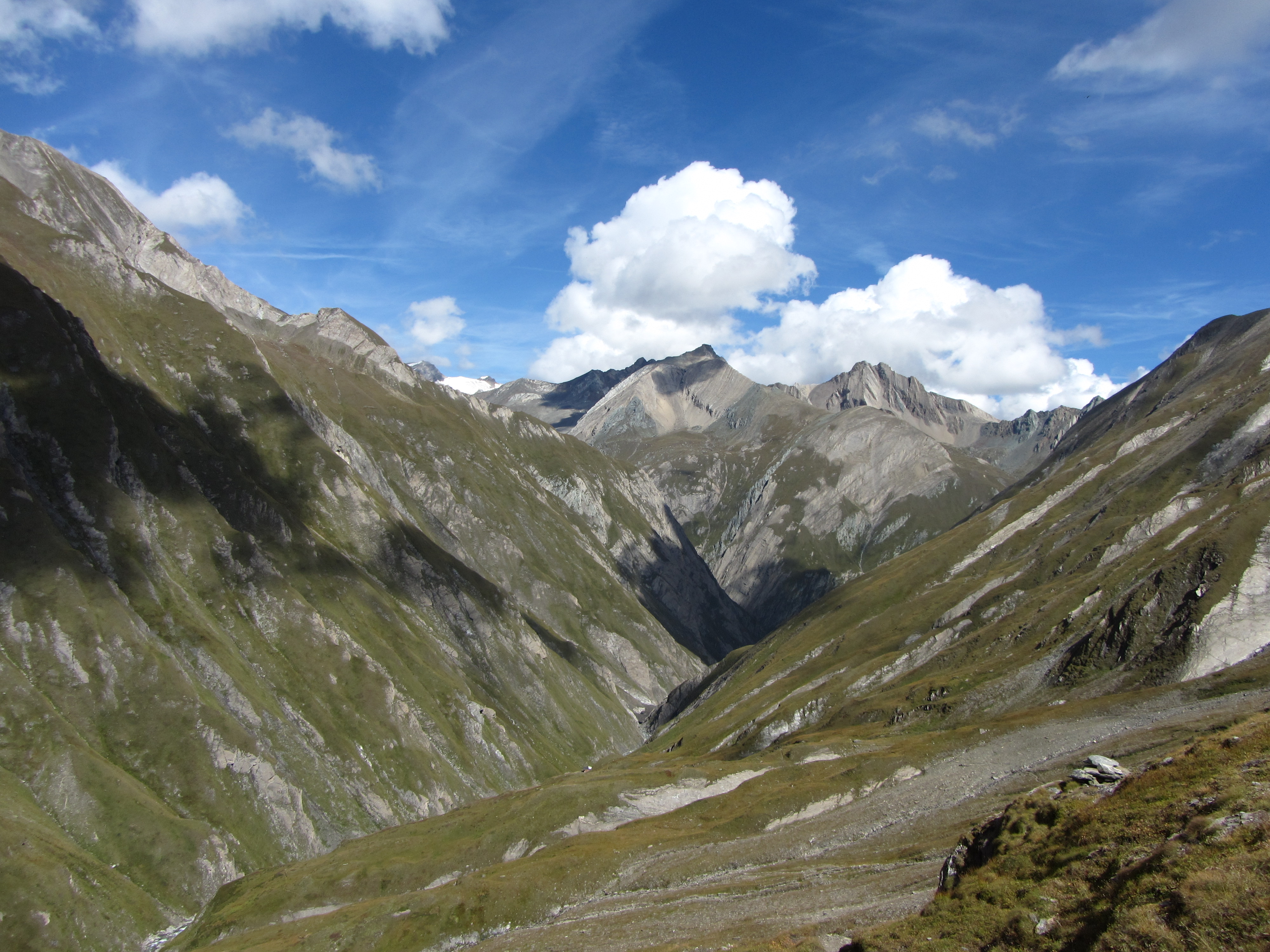 Beekoversteek. Helaas het verkeerde pad dus twee keer overgestoken Hoe overtuigend het pad beneden er eerst ook uitzag, het was toch verkeerd Geen Edelweiß Terugblik door het Dabertal Het pad ging langzaam linksaf en de wereld werd steeds kaler Die ene had de verkeerde dresscode gekregen Richting Daberlenke ging het nog maar een beetje op en neer