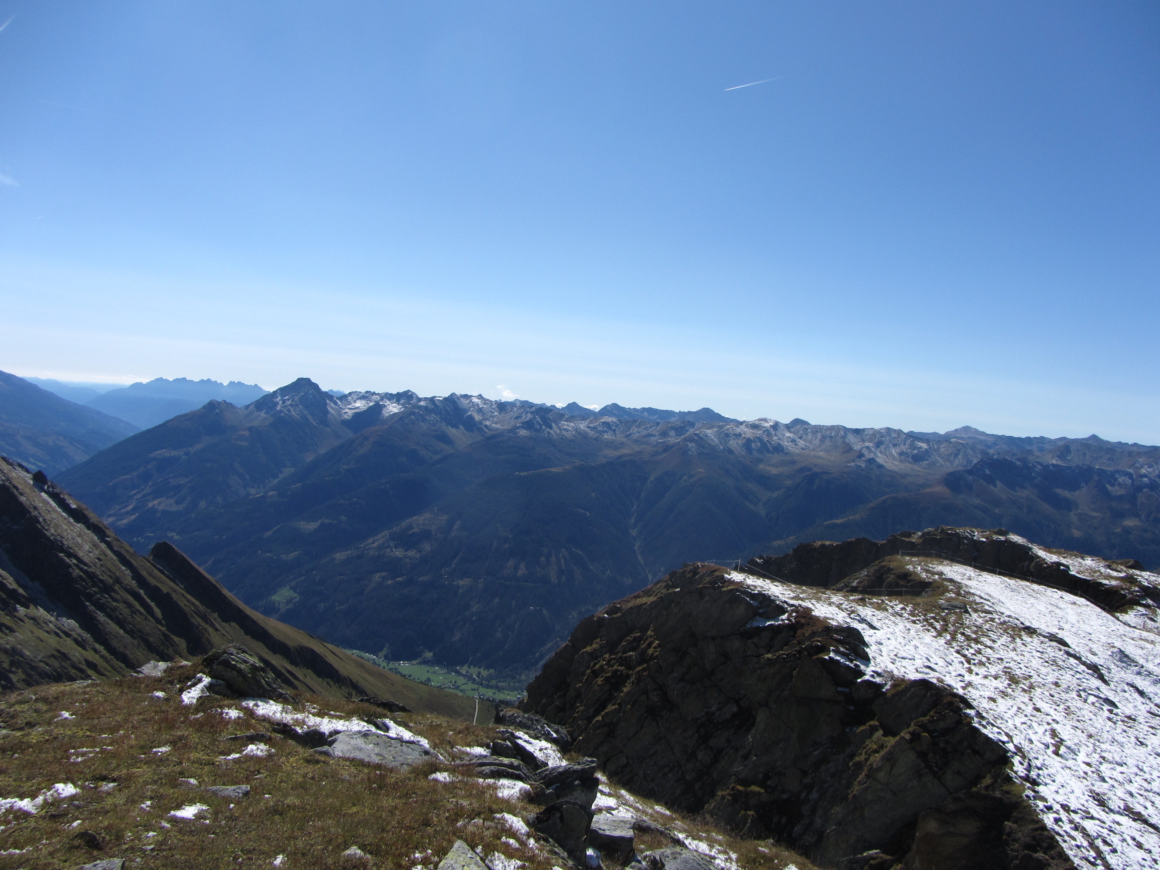 Bijna bovenaan de Eselsrücken Opeens weer veel meer uitzicht De Bonn Matreier Hütte in de sneeuw in het zonnetje De sneeuw rond de Zupalsee is al grotendeels verdwenen Het pad was van bovenaf erg goed zichtbaar Uitzicht naar het zuidwesten Aan de andere kant ging het heel steil zigzag naar beneden