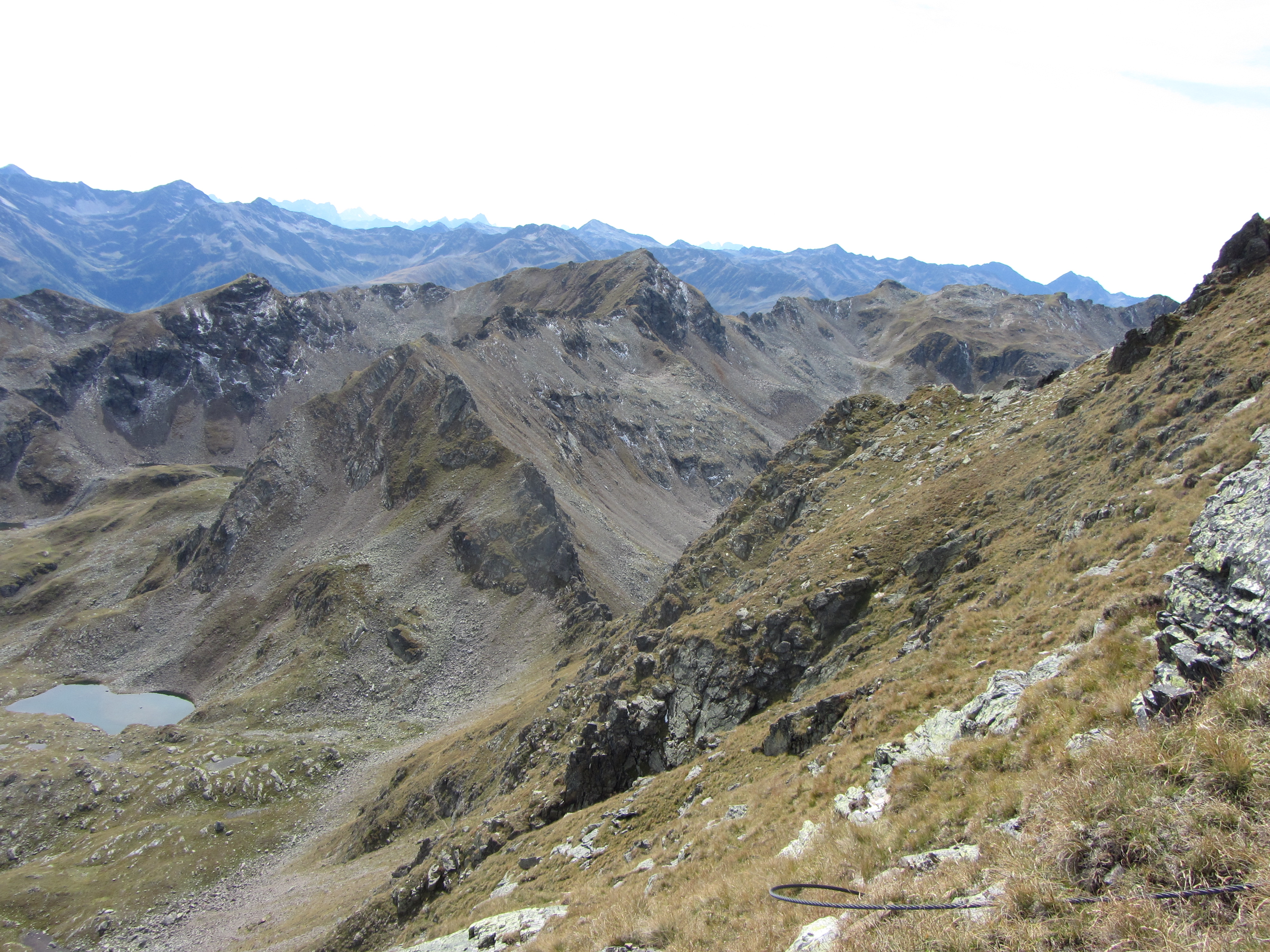 De weg vanaf het Rottörl De top van de Großer Zunig is nog maar 150m Het pad zigzagde nu weer steil omhoog Ook nu nog een stukje staalkabel voor de Schwindelbeschwerden Het Gipfelkreuz is nu vlakbij Vanaf de top uitzicht over Matrei Het Gipfelkreuz