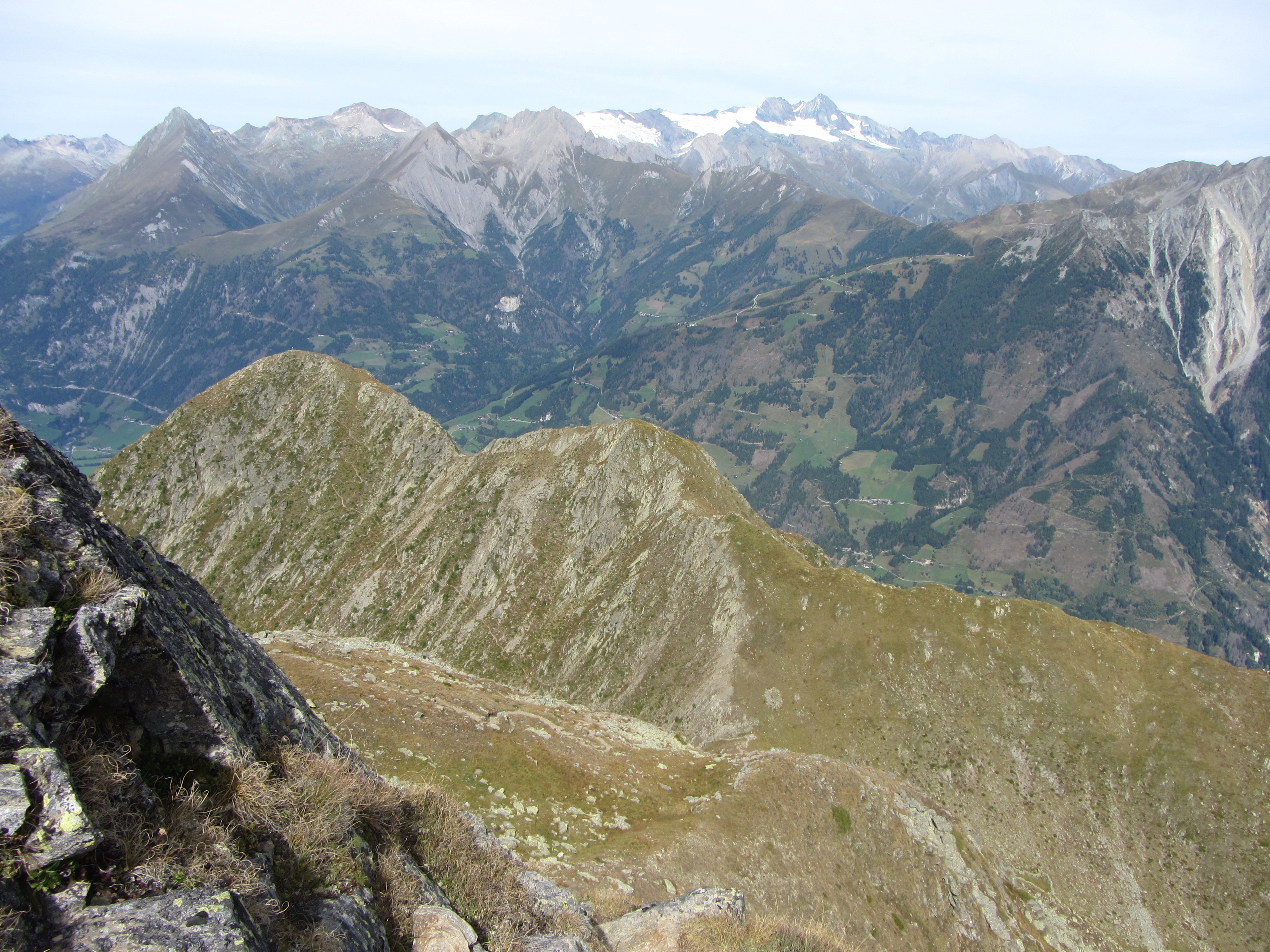 Richting Lienz waren zelfs wat bergen uit Slovenië te zien (ruim 100km ver weg) In Italië zijn alle bergen blauw Weer zigzag naar beneden De Zunigtörl en het pad naar de Kleiner Zunig (nu nog beneden). Het afgesplitste dalpad vanaf de Rottörl komt hier weer terug. Vanaf de Zunigtörl is de Kleiner Zunig weer een stukje naar boven De Zunigsee en vlak daarachter de Ganitzle Op de Kleiner Zunig, blik richting Felbertauern