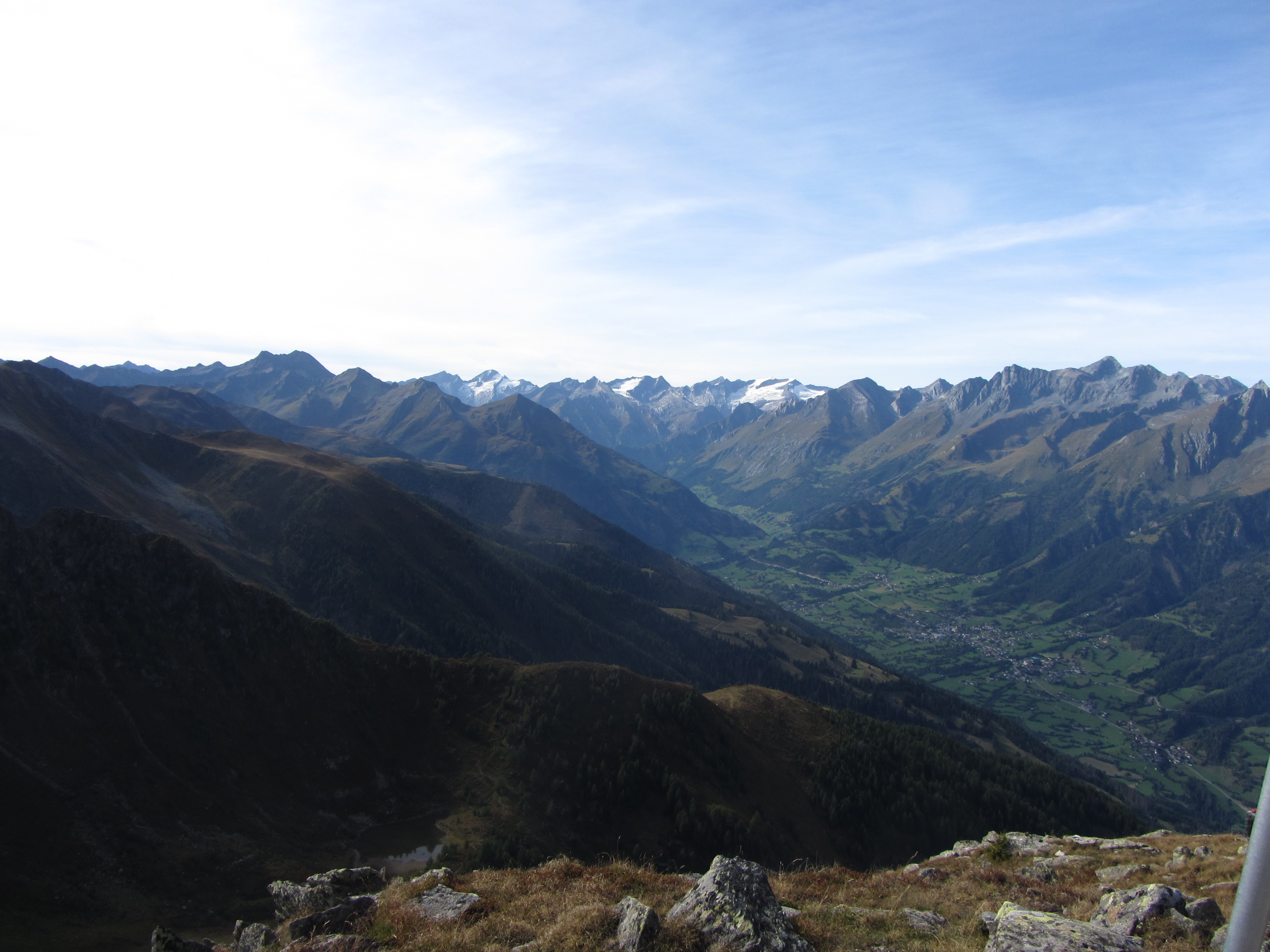 Vanaf de Zunigtörl is de Kleiner Zunig weer een stukje naar boven De Zunigsee en vlak daarachter de Ganitzle Op de Kleiner Zunig, blik richting Felbertauern Het Virgental in de namiddagnevelzon De Großer Zunig vanaf de Kleiner Zunig De Großer Zunig vanaf de Zunigsee die wat last had van droogte Bij de boomgrens brak ook de zon nog even door