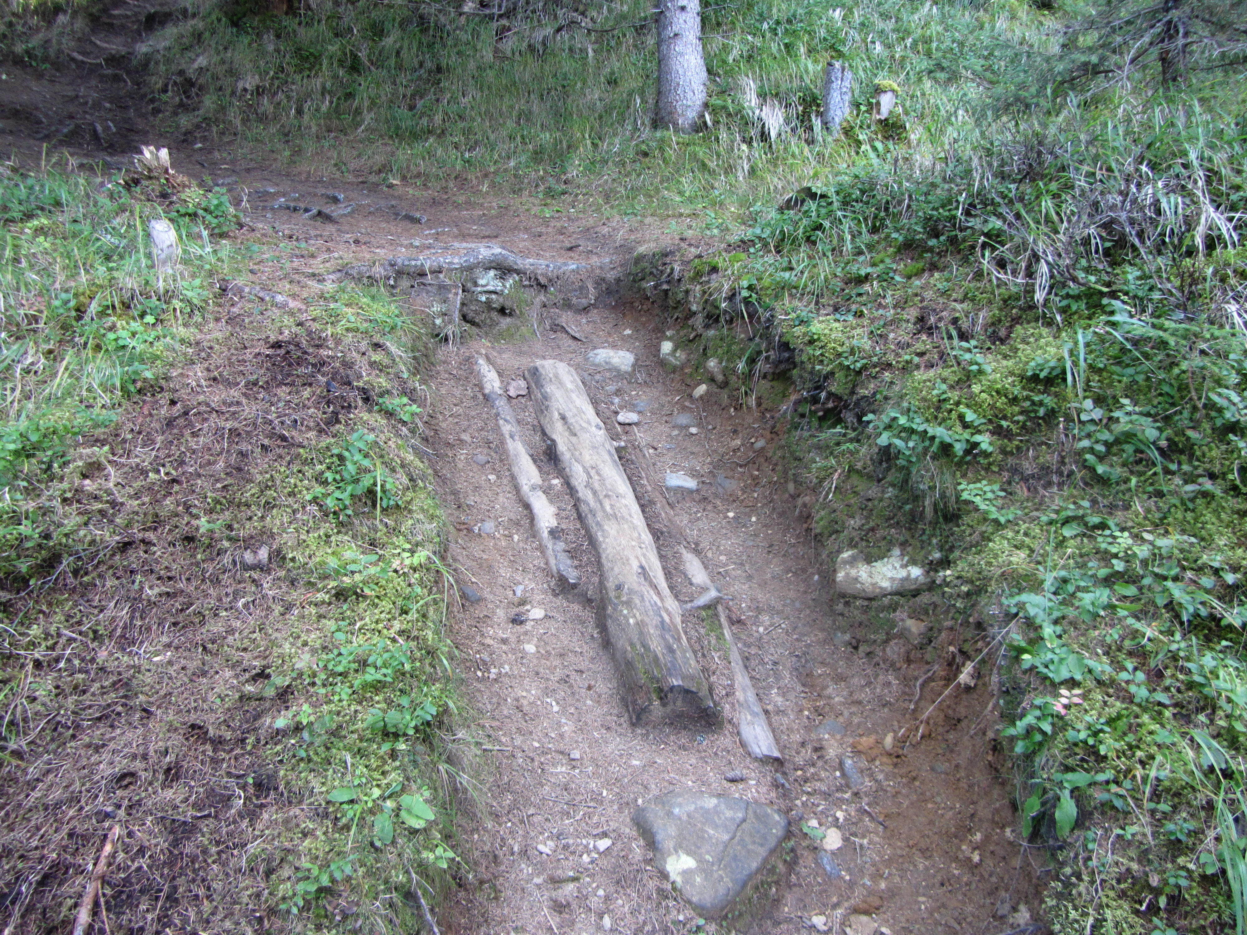 De Großer Zunig vanaf de Zunigsee die wat last had van droogte Bij de boomgrens brak ook de zon nog even door Zunigalm, Kleiner Zunig en Großer Zunig Superhandige padinrichting voor als het regent: dan ben je wat sneller beneden Mijn schaduw deed al een beetje Slenderman Handige kerstboom als je op 10-hoog woont en je geen zin hebt om je boom de trap op te sjouwen Naar de Eisseehütte, de Wallhorntörl en de Weißspitze