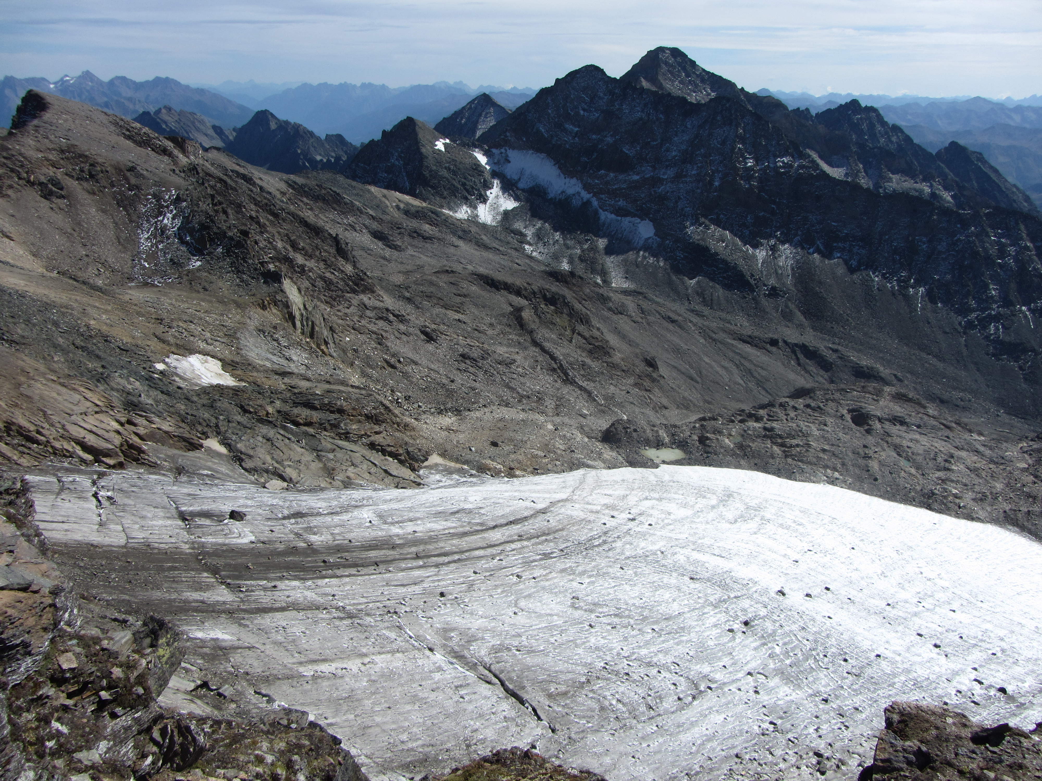 De Garaneberkees van bovenaf Bijna bij de top met twee Gipfelkreuzen en een Steinmann Achter het kleine Gipfelkreuz was natuurlijk ook weer de Groß Glockner te zien Uitzicht naar het zuidwesten De Lasörling en de Kreuzspitze lager dan je standpunt zien is toch ook wel bijzonder Uitzicht naar het westen incl. het laatste stukje pad Uitzicht naar het noordwesten