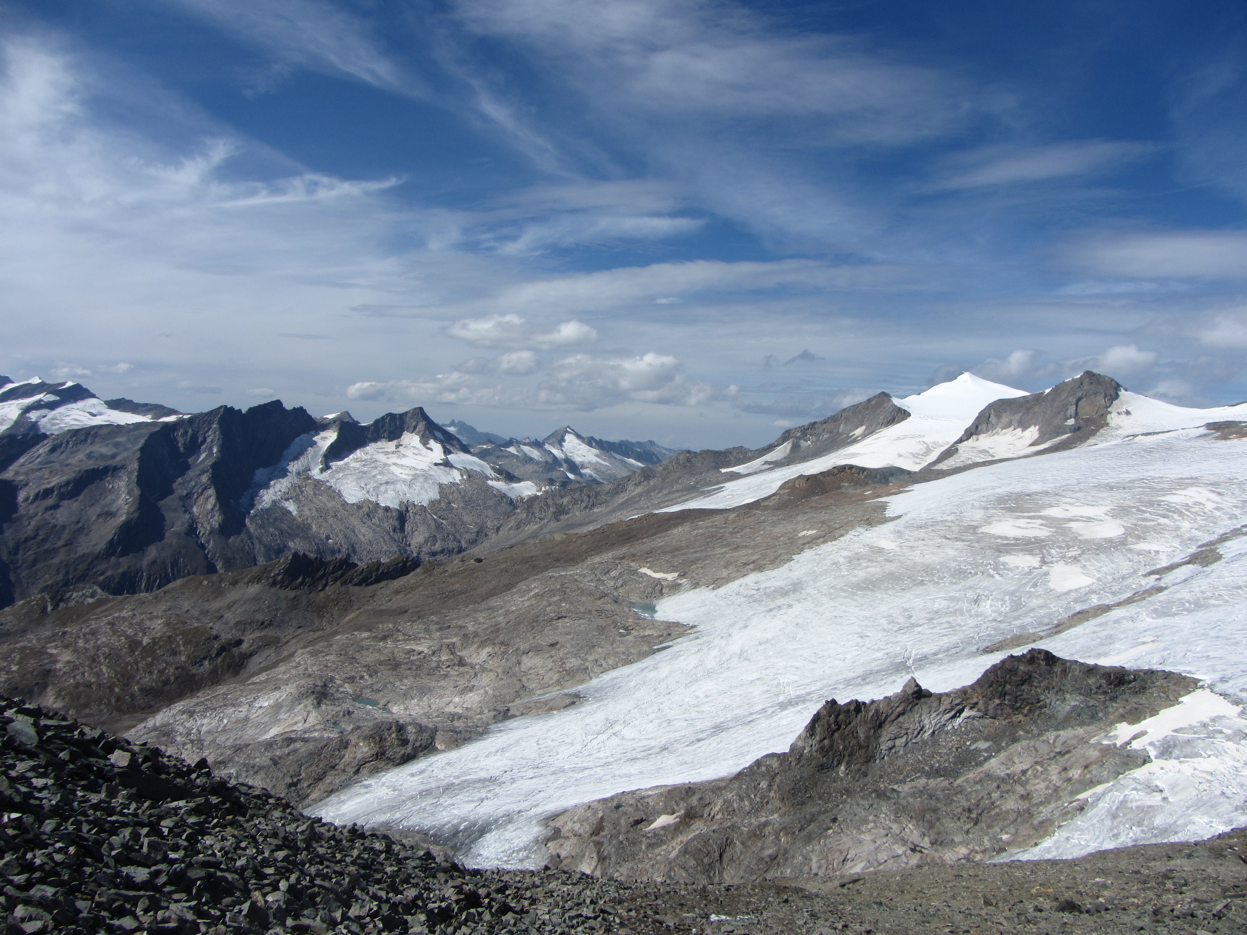 Uitzicht naar het zuidwesten De Lasörling en de Kreuzspitze lager dan je standpunt zien is toch ook wel bijzonder Uitzicht naar het westen incl. het laatste stukje pad Uitzicht naar het noordwesten De Wilder Kaiser was ook te zien De Wilder Kaiser hier een beetje beter te zien De Frosnitzkees in het lege lege Frosnitztal