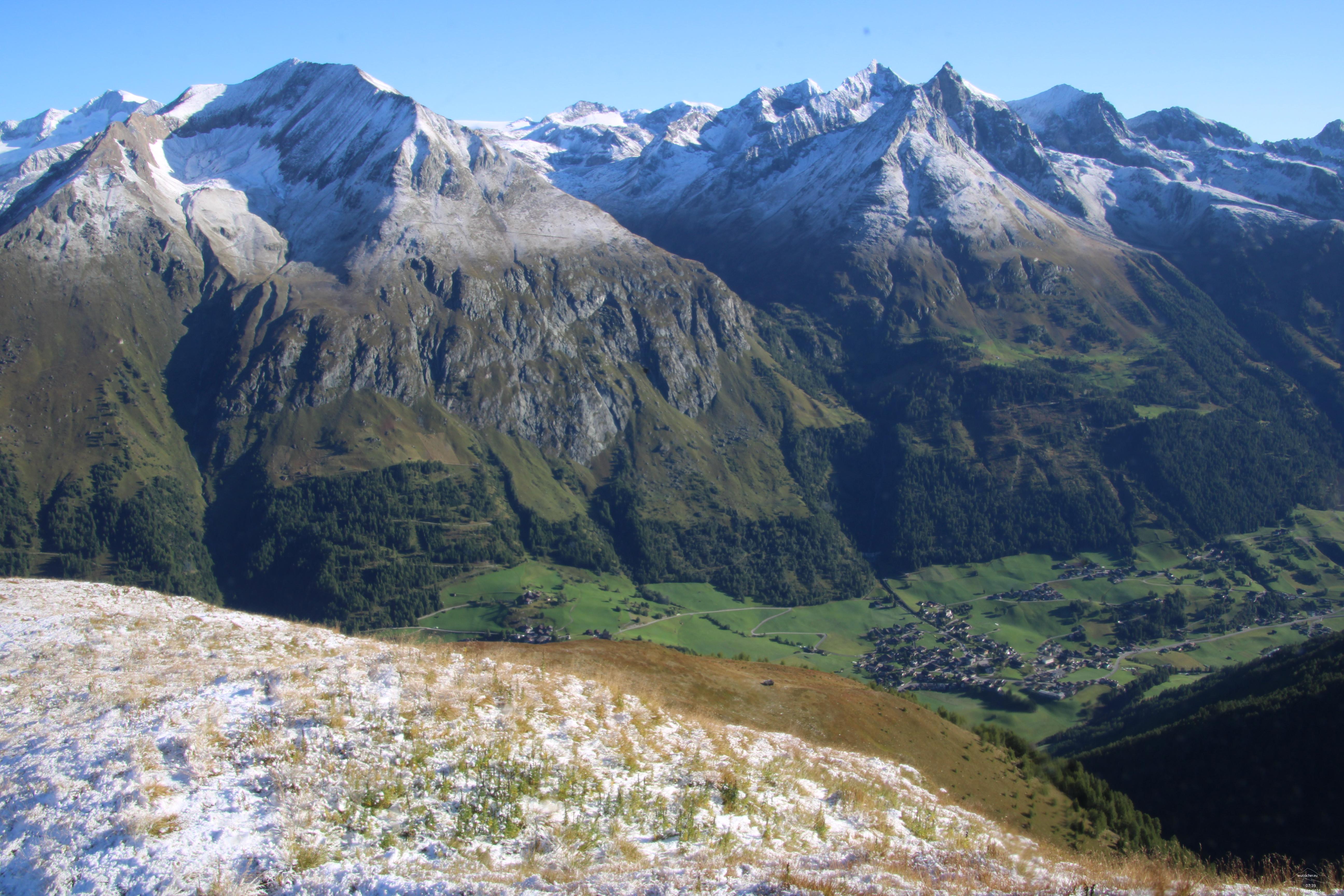 De wereld hing helemaal scheef door de regen Eind van de middag verdween de Berger Kogel helemaal in een dikke onweersbui Er was zelfs verse sneeuw gevallen op de bergen achter het Gästehaus Foto door de Muhs webcam van de volgende ochtend Verse sneeuw vanaf 2300m Hele vroege paraglider Via de Wunalm naar de Bonn Matreier Hütte en de Rauhkopf