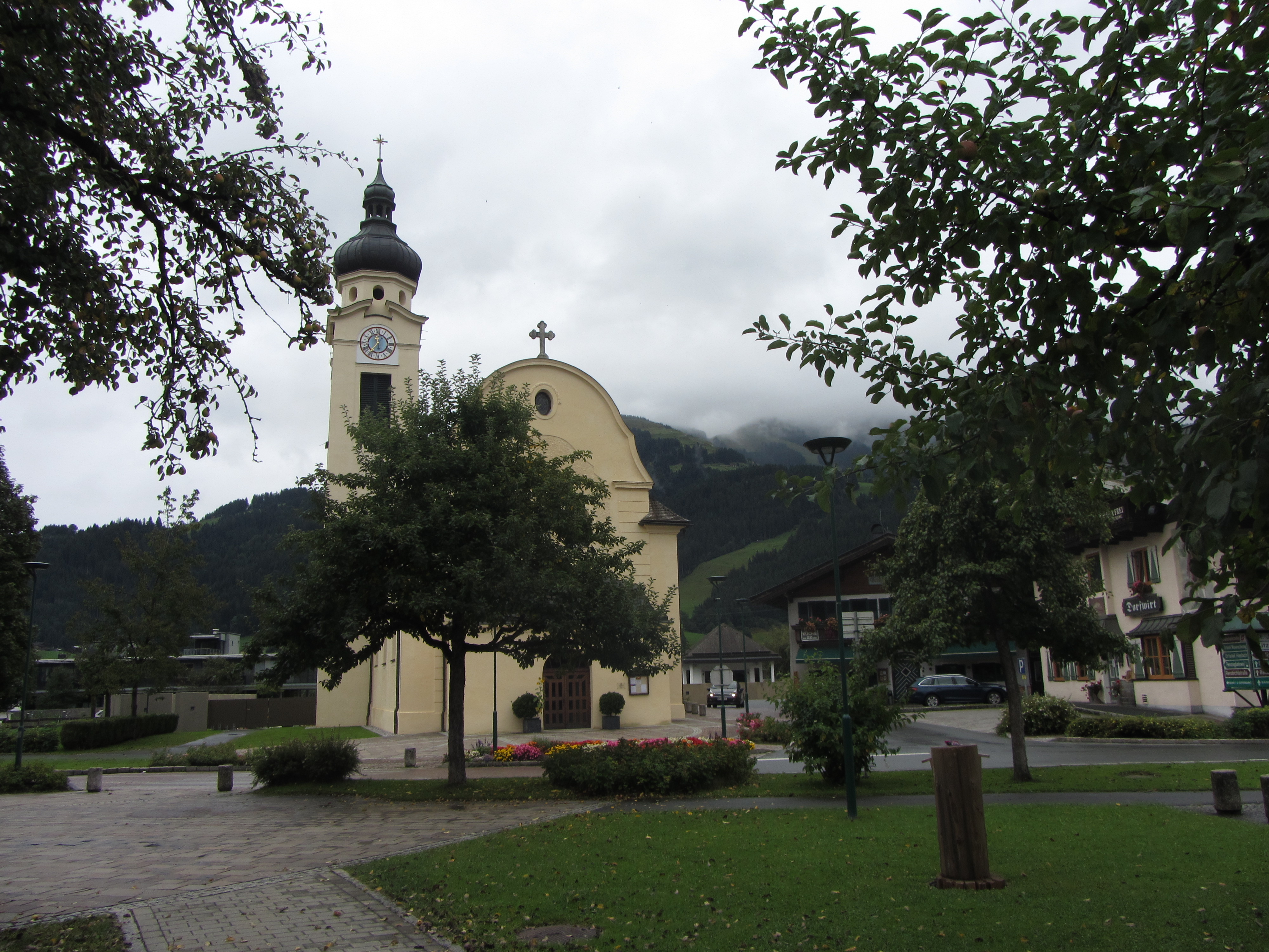 In Oberndorf was er door de laaghangende bewolking geen zicht op de Kitzbüheler Horn