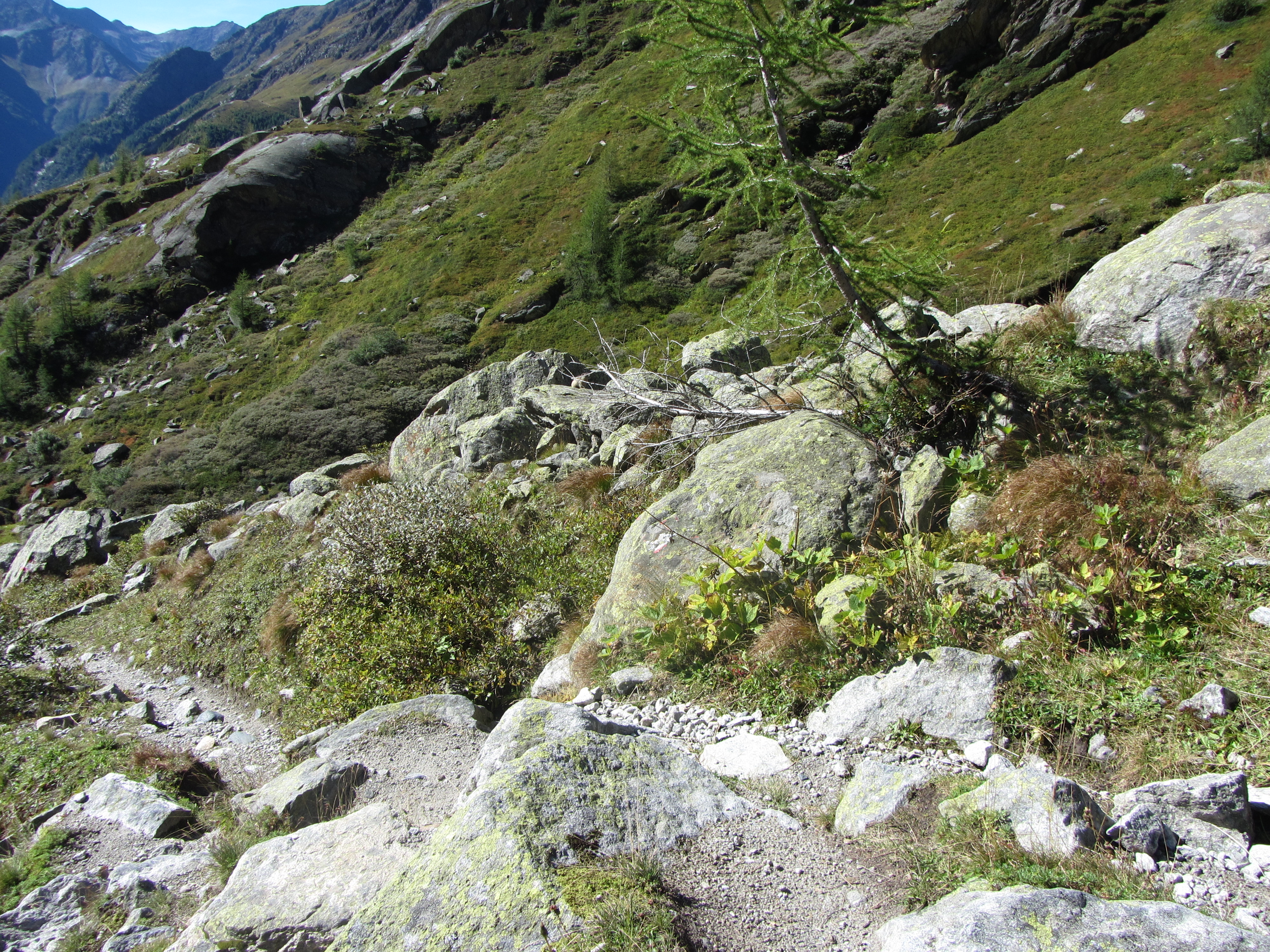 Die koeien stonden behoorlijk in de weg Maar ze hadden wel een mooi uitzicht De hut kwam in beeld Zoek het (jonge) Murmeltier Bijna bij de hut Bij de hut kun je allerlei kanten op; deze keer naar de Rostocker Eck via de Direktanstieg via de noordkant Nog meer wilde dieren