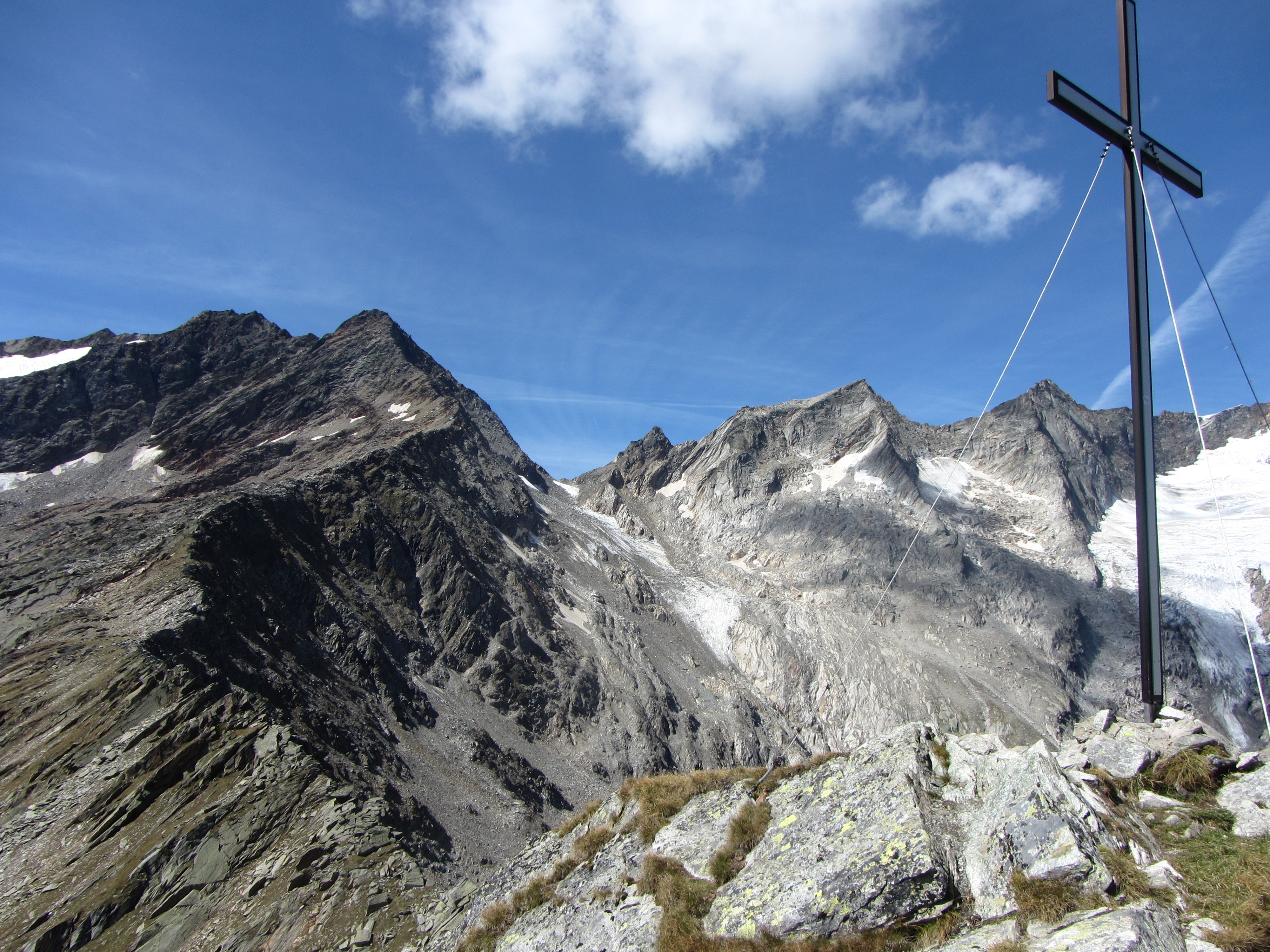 De rotsige wand van een paar foto's terug ziet er van boven af veel minder indrukwekkend uit
