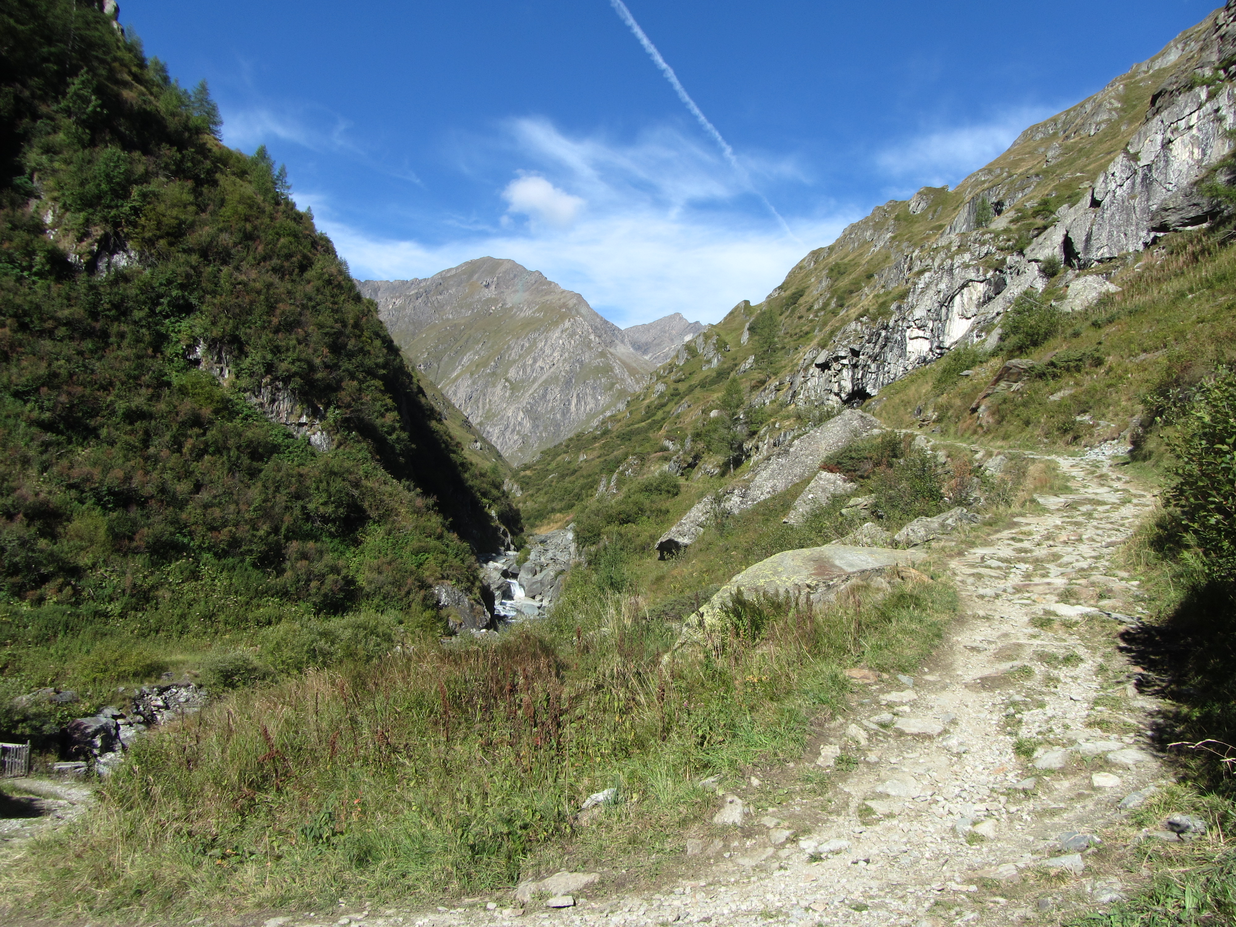 De koeien lagen lekker te liggen in het namiddagzonnetje Naar de Neue Reichenberger Hütte, via het Dabertal De Umbalfälle De splitsing Umbaltal-Dabertal kwam in beeld Het gletsjertje bij de top van de Rötspitz wordt steeds zieliger Thou shall not pass (oh ech wel) Het begin van het Dabertal. Het eerste stukje pad slingert flink omhoog.