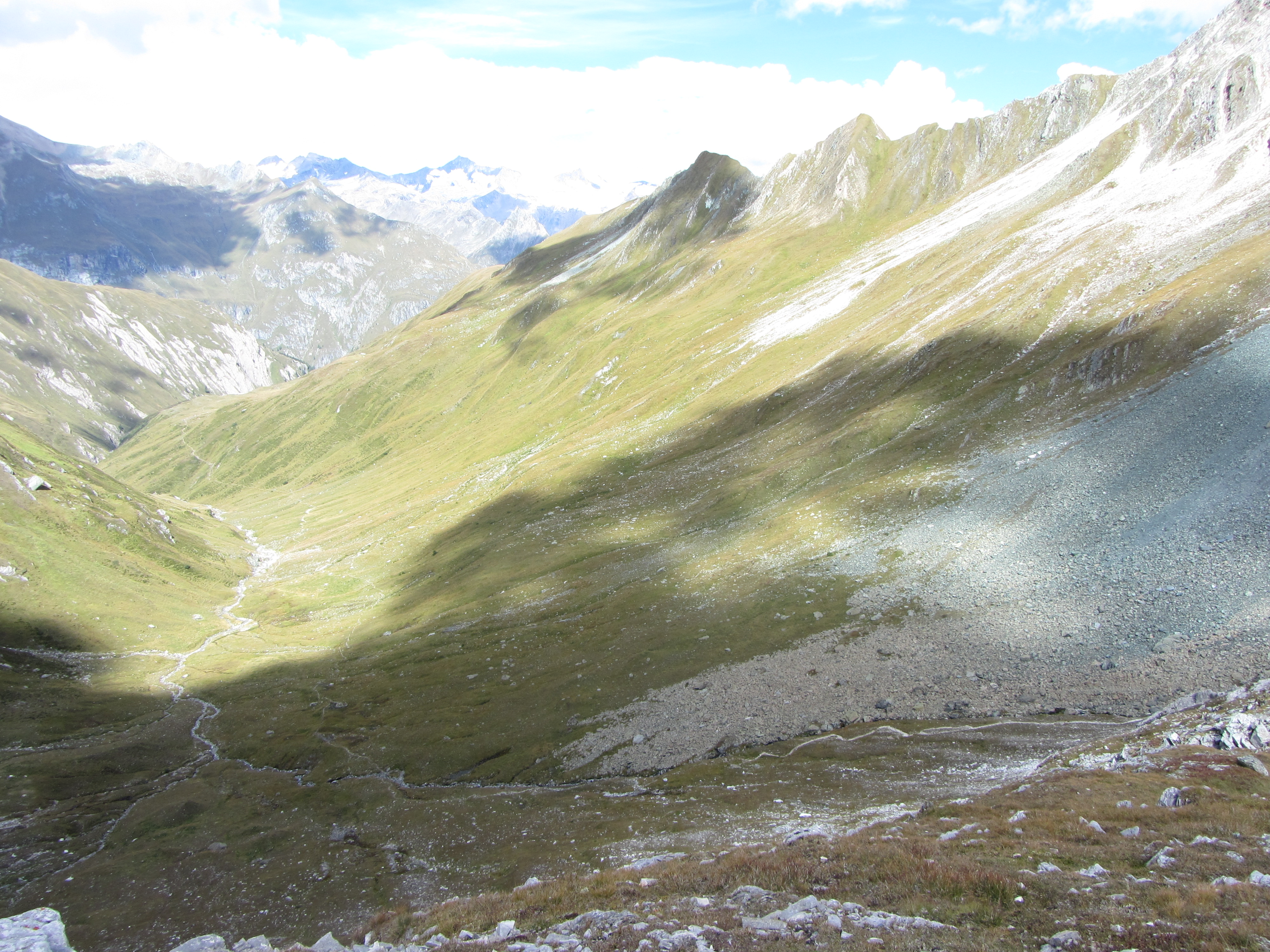 De Neue Reichenberger Hütte kwam in zicht Bij de Bödensee net voorbij de hut. De Gösleswand blijft toch wel een heel bijzondere berg. Op de Bachlenke uitzicht over het Großbachtal richting Groß Venediger Het pad door het Großbachtal in de namiddagzon De Gösleswand Dit was wel een van de mooiste uitpufzitstenen aller tijden Terugblik richting Gösleswand en Bachlenke