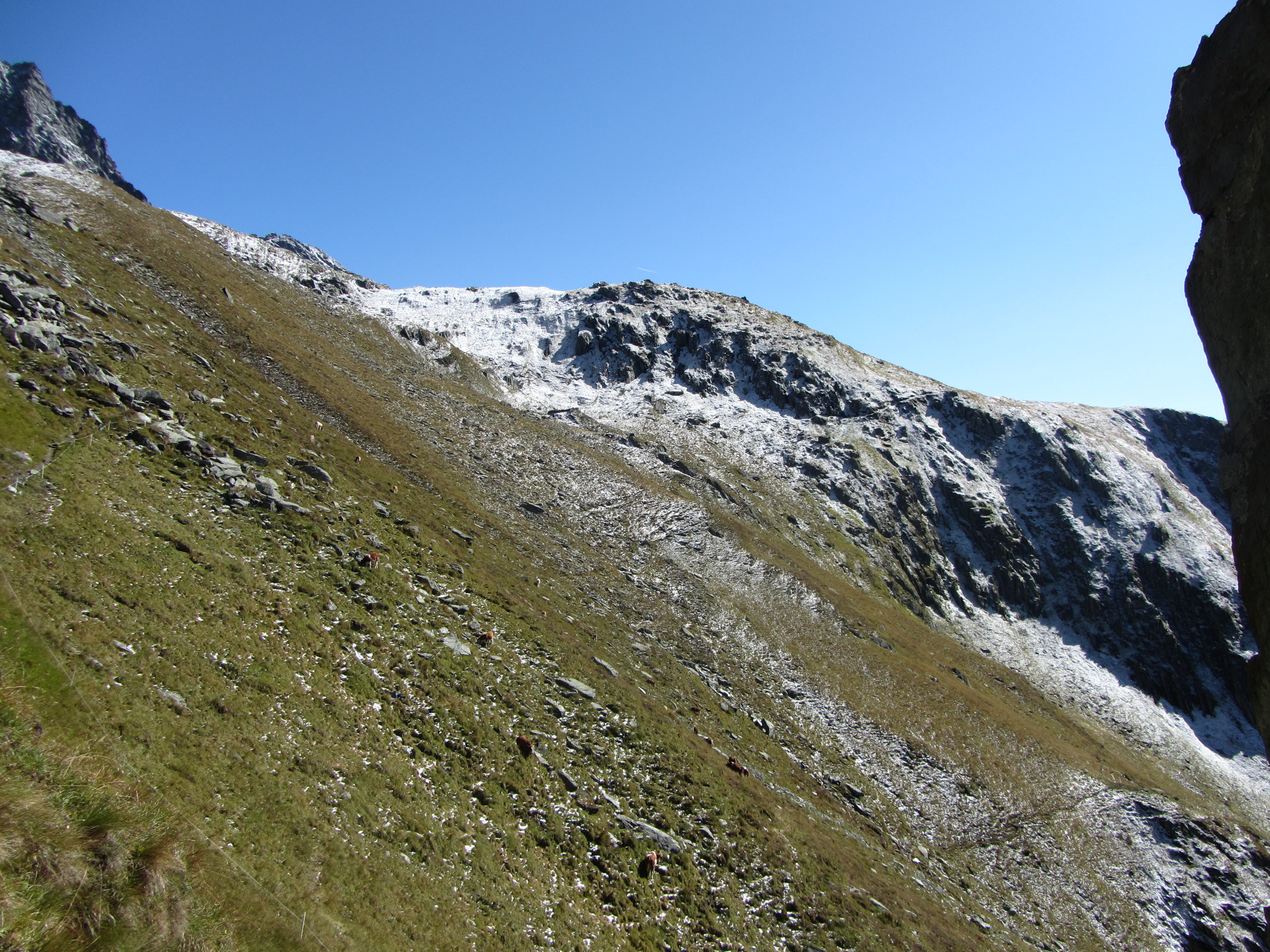 Geheel per ongeluk een Artsy Fartsy Live Laugh Love-foto gemaakt De meeste sneeuw lag op het gras en niet op het pad Er waren jagers op wolvenjacht (beweerden ze) maar ze hadden alleen maar twee Murmeltiere geschoten Het pad over de Eselsrücken liep verrassend ver omhoog Maar liefst vier mensen gespot (die twee van eerder plus twee verse bejaarden) Bijna bovenaan de Eselsrücken Opeens weer veel meer uitzicht