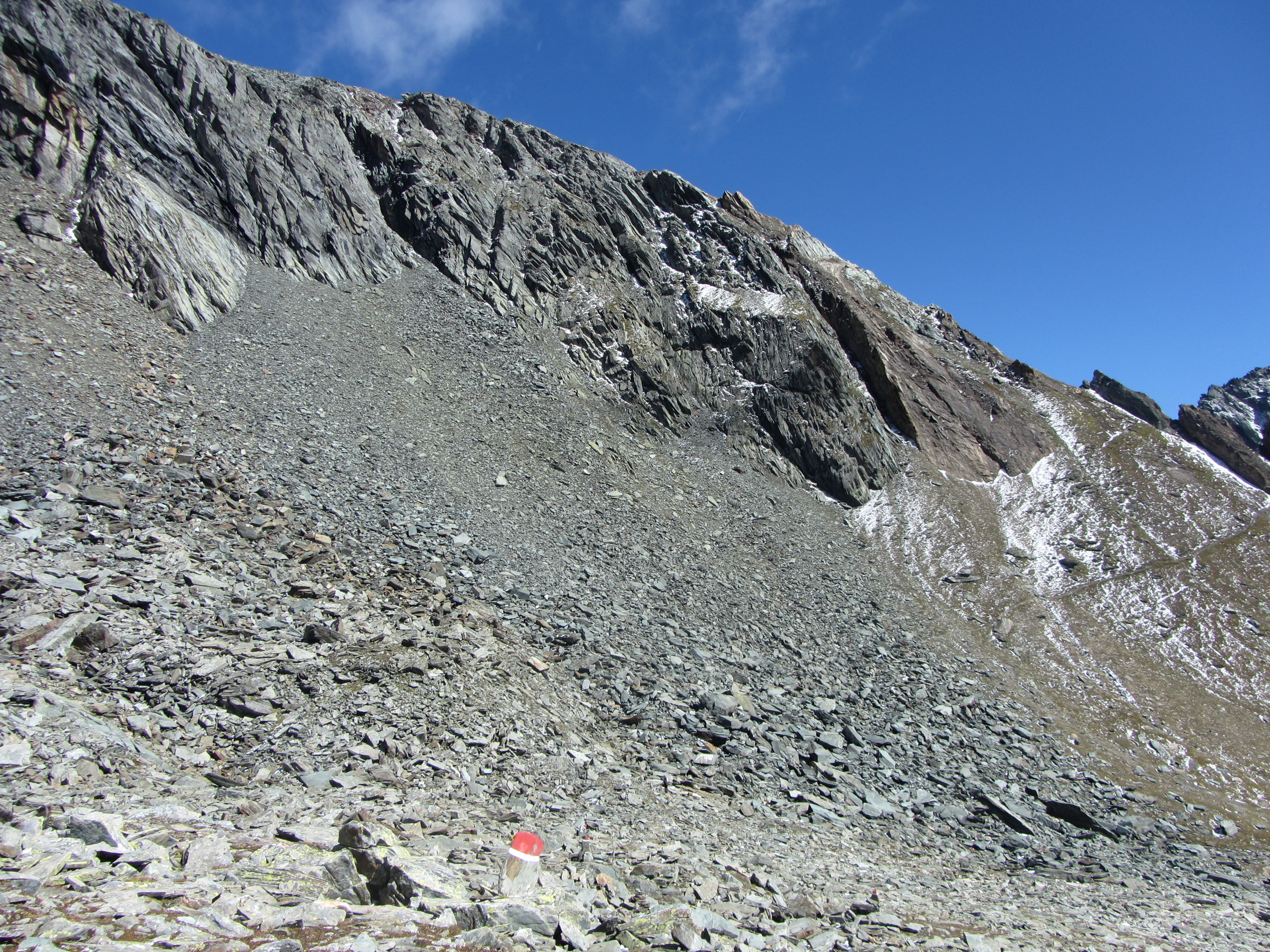 Bij de Bonn Matreier Hütte De Rauhkopf en het pad over de graat incl mensen Ze zijn niet heel creatief met wegnummers Er lagen wat steentjes op het pad Die kant op dus Opeens dook de Groß Glockner op De dame met de pet van het terras was een handige verkenner, maar eigenlijk ging het vooral recht omhoog