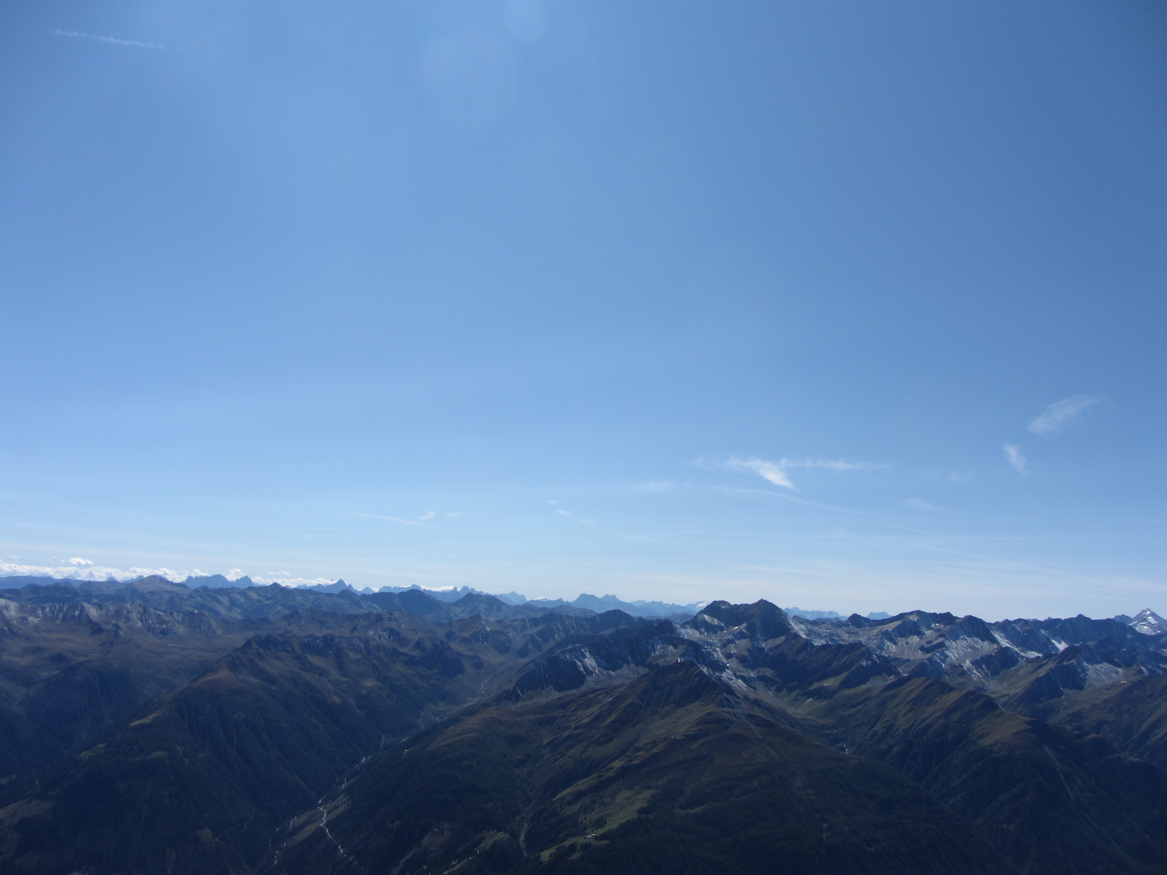 Uitzicht naar het noorden (nog veel meer leeg leeg Frosnitztal) Richting oosten 1800m in de diepte lag het Virgental Er waren ook allerlei Dolomiten te zien, zelfs een van de beroemdste Op de terugweg nog wat mensen vlakbij de top gespot Alweer voorbij de hut Over de grote brede weg via de Nilljochhütte terug