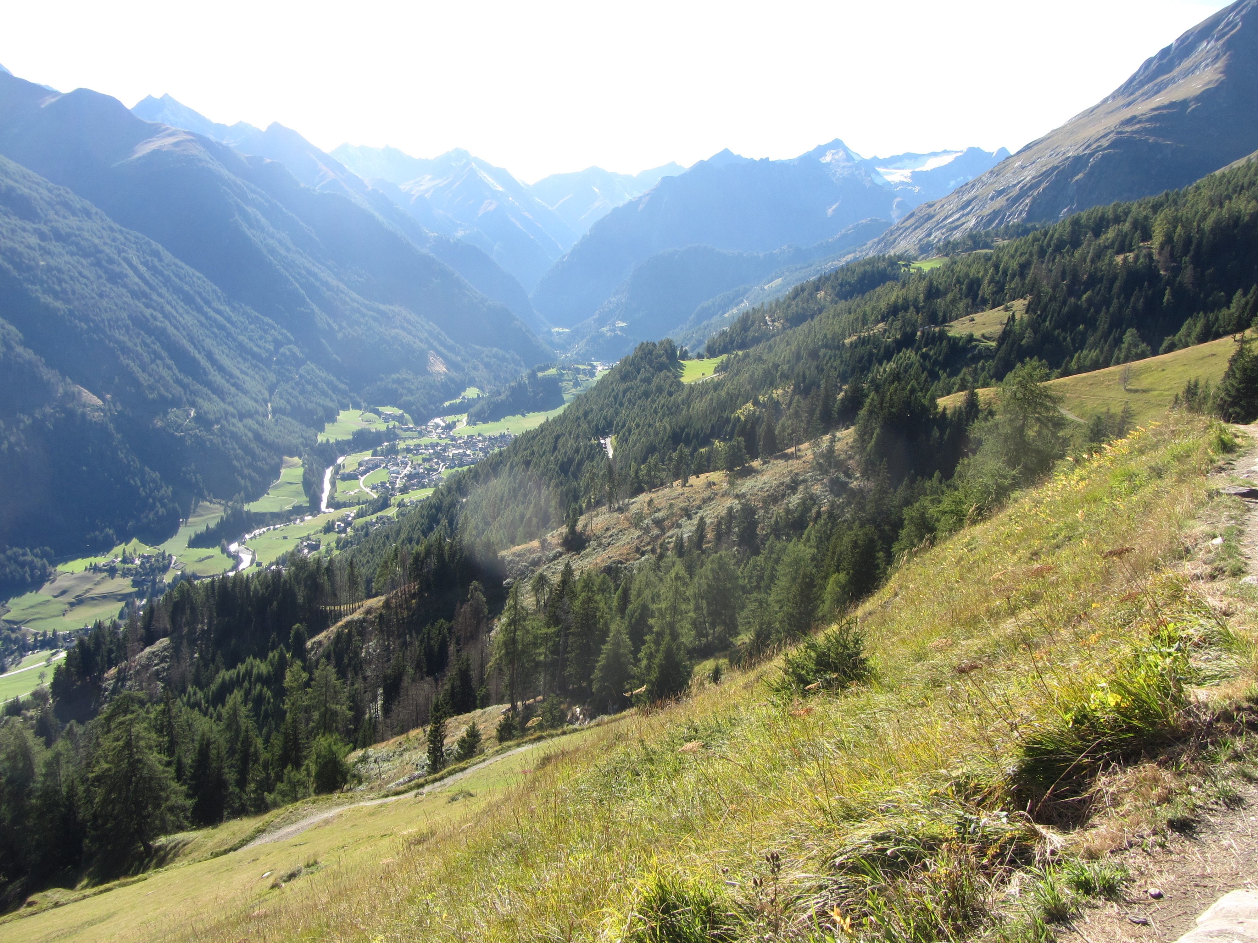 De Nilljochhütte met uitzicht over Virgen Vanaf de Nilljochhütte blik richting Prägraten Eind van de middag waren er nog steeds vogels rondjes aan het draaien Parkplatz Bodenalm was ook opeens zichtbaar Via de Arnitzalm naar de Arnitzsee en via de Rottörl en de Zunigs terug De Großer Zunig had nog wat sneeuw op z'n noordkant De Nilljochhütte van gisteren was te zien boven Virgen
