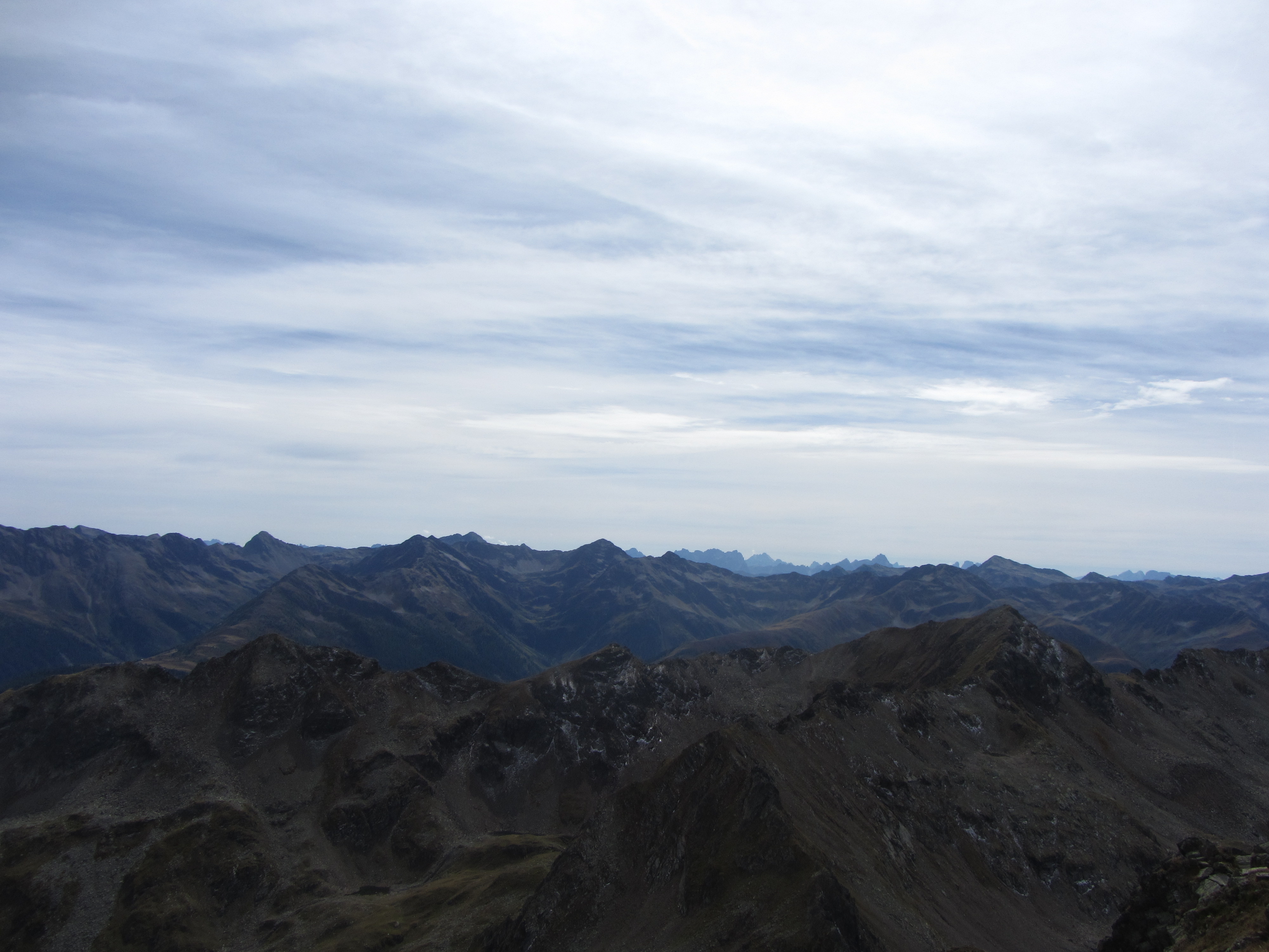 Uitzicht over het Virgental De Groß Glockner Richting Lienz waren zelfs wat bergen uit Slovenië te zien (ruim 100km ver weg) In Italië zijn alle bergen blauw Weer zigzag naar beneden De Zunigtörl en het pad naar de Kleiner Zunig (nu nog beneden). Het afgesplitste dalpad vanaf de Rottörl komt hier weer terug. Vanaf de Zunigtörl is de Kleiner Zunig weer een stukje naar boven