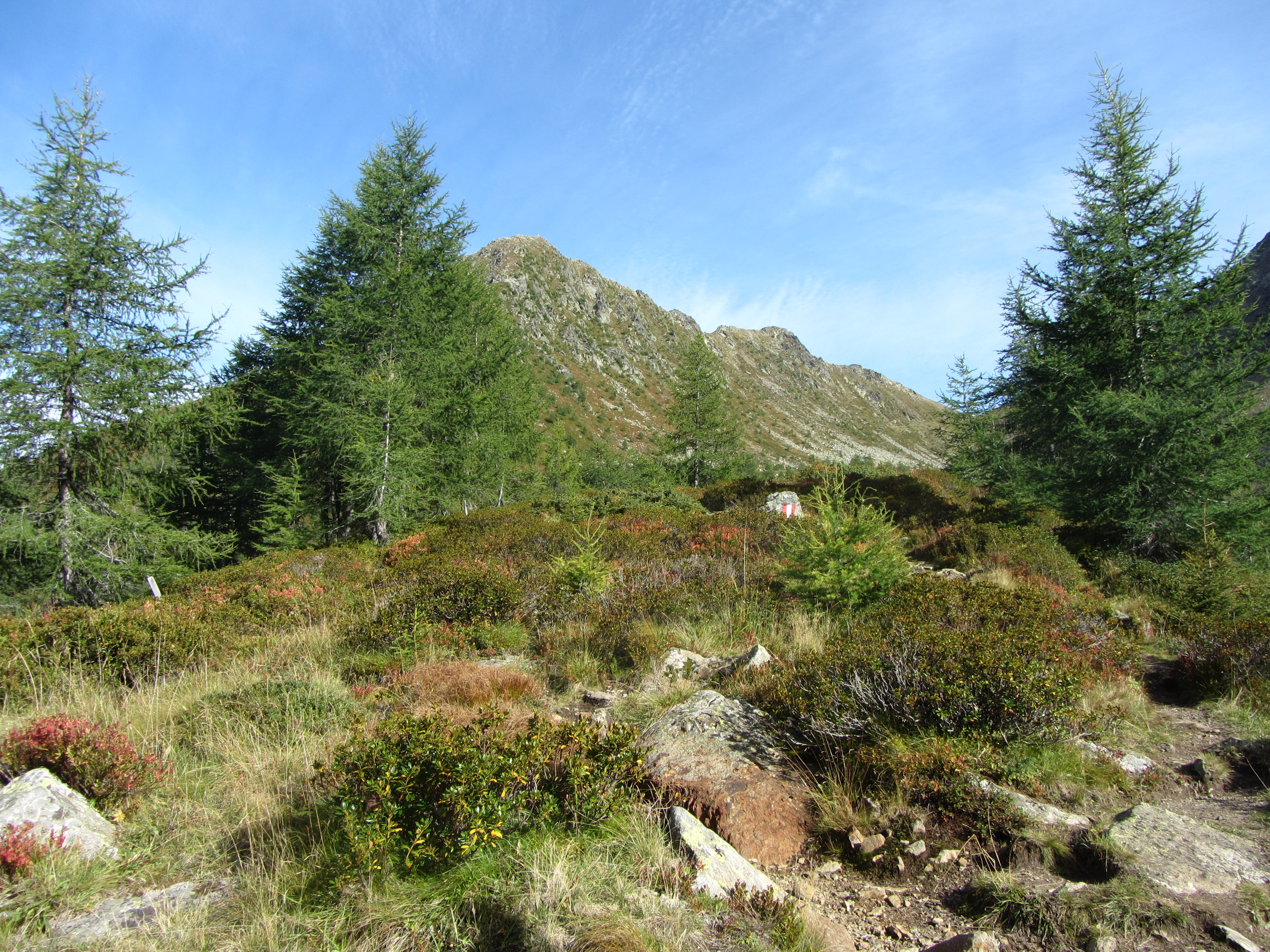 Het Virgental in de namiddagnevelzon De Großer Zunig vanaf de Kleiner Zunig De Großer Zunig vanaf de Zunigsee die wat last had van droogte Bij de boomgrens brak ook de zon nog even door Zunigalm, Kleiner Zunig en Großer Zunig Superhandige padinrichting voor als het regent: dan ben je wat sneller beneden Mijn schaduw deed al een beetje Slenderman