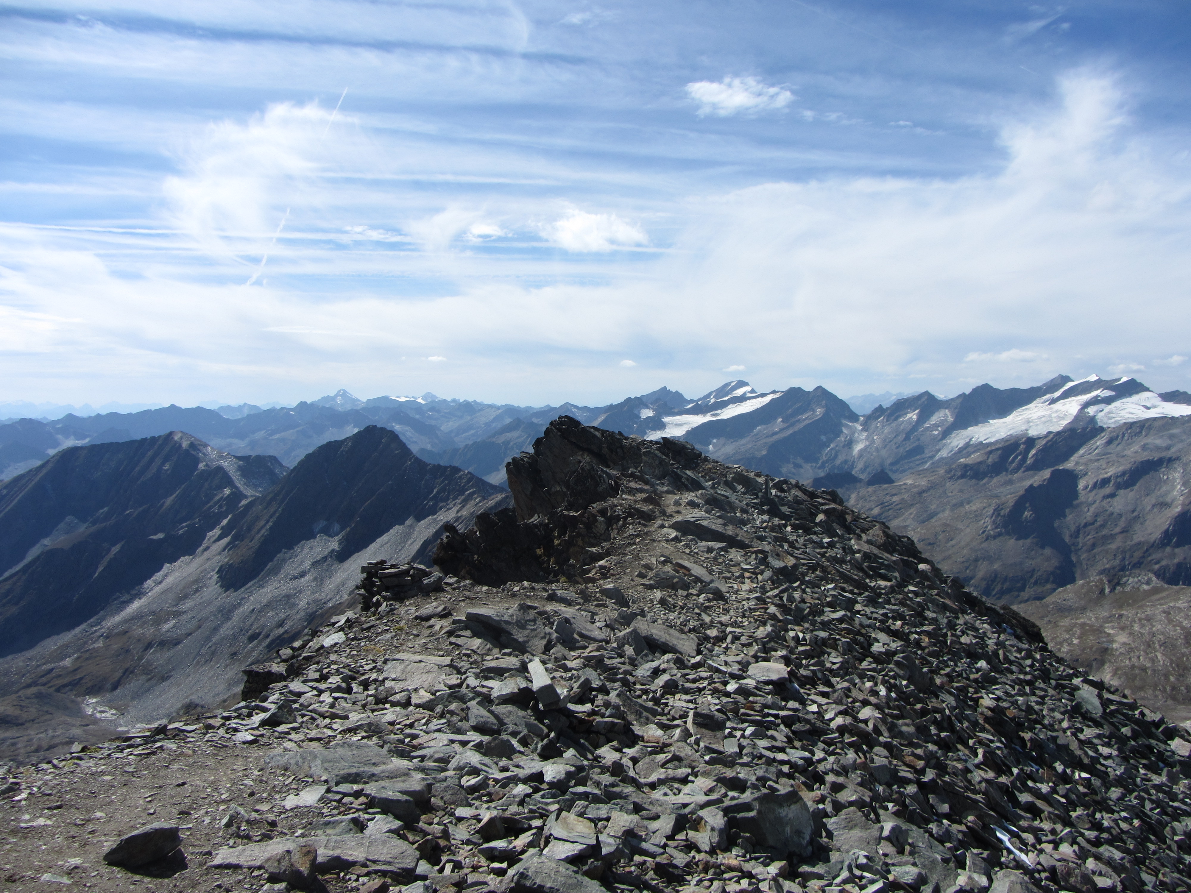 Achter het kleine Gipfelkreuz was natuurlijk ook weer de Groß Glockner te zien Uitzicht naar het zuidwesten De Lasörling en de Kreuzspitze lager dan je standpunt zien is toch ook wel bijzonder Uitzicht naar het westen incl. het laatste stukje pad Uitzicht naar het noordwesten De Wilder Kaiser was ook te zien De Wilder Kaiser hier een beetje beter te zien